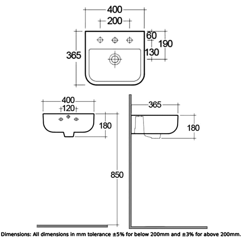 RAK Series 600 2 Tap Hole Hand Basin - 400mm