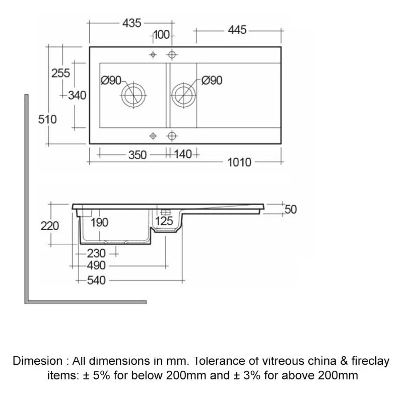 Made from high-quality fireclay, this sink is durable and built to last. With no predrilled tap holes, it allows full customisation for your preferred tap style. Tap and waste with overflow kit sold separately.
