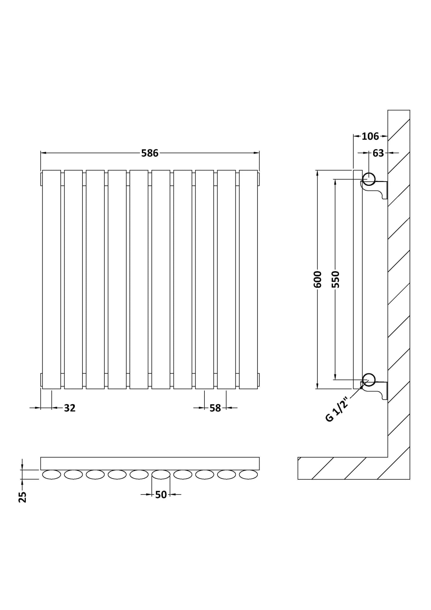 Designed for use with standard UK wet central heating systems, the radiator features 1/2 inch British Standard Pipe connections for straightforward integration. Fixing screws are supplied for secure wall installation, while radiator valves are sold separately to allow flexibility in styling and control. When installing a new radiator, it is recommended that a suitable inhibitor is added when refilling the system to help protect internal components. Pipework should only be fitted once the radiator has been received and checked, ensuring accurate alignment and spacing.